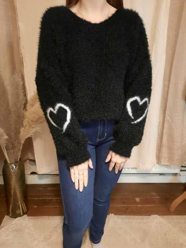 Pull bohème avec cœur sur manches – Mohair & Acrylique