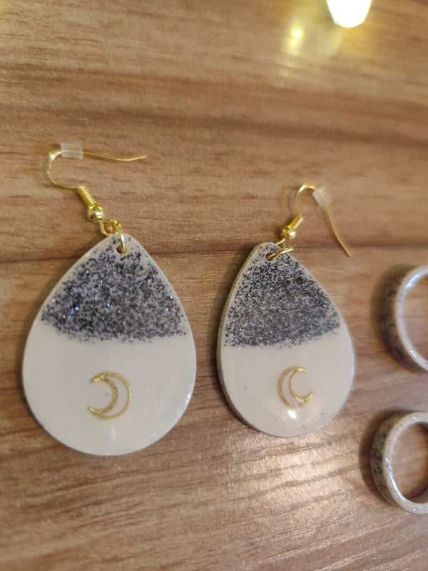 Découvrez mes premières boucles d’oreilles, créées avec passion à base de résine naturelle éco-responsable et vernies à la résine UV pour un fini brillant et durable.