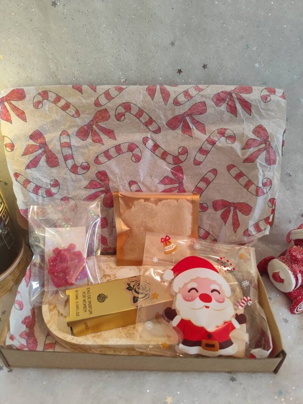 Coffret de Noël – Plateau marbré, rose pailletée & senteurs gourmandes