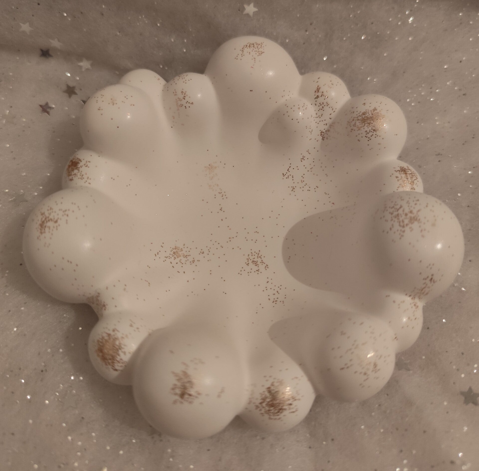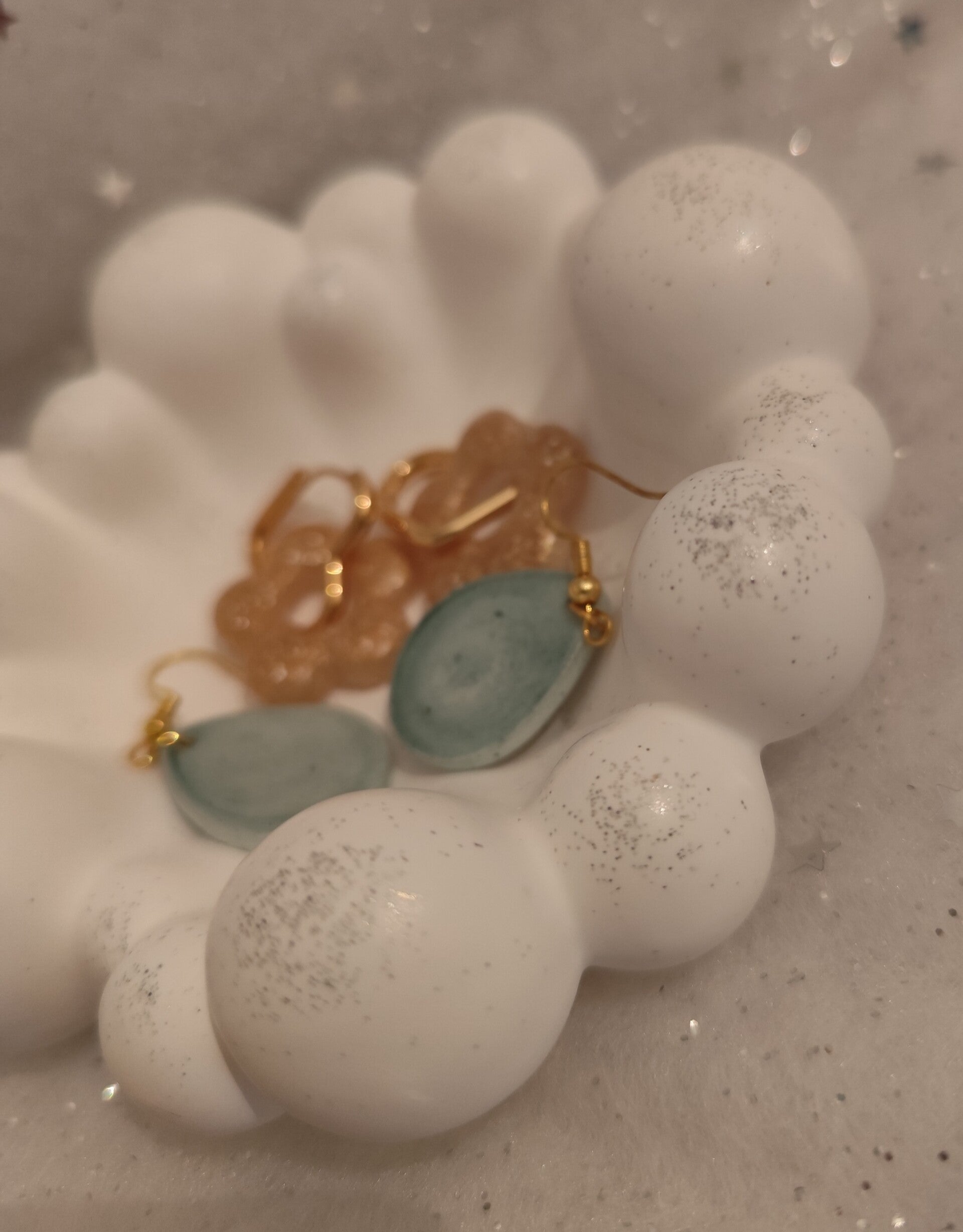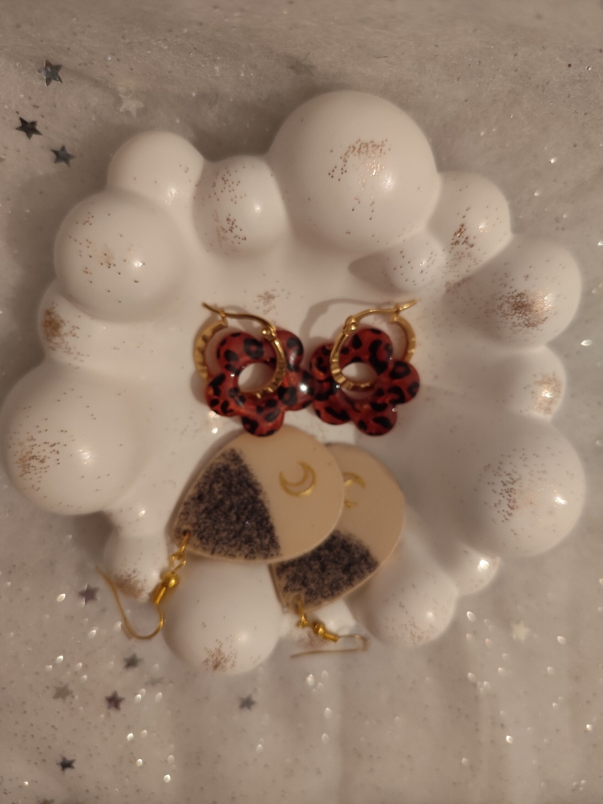 À l’ouverture, vous y trouverez un plateau Bubulle en résine naturelle écoresponsable, disponible en blanc paillettes or ou blanc paillettes argentées. Élégant et polyvalent, il peut servir de vide-poche, de déco pour votre intérieur ou encore de support pour bijoux.